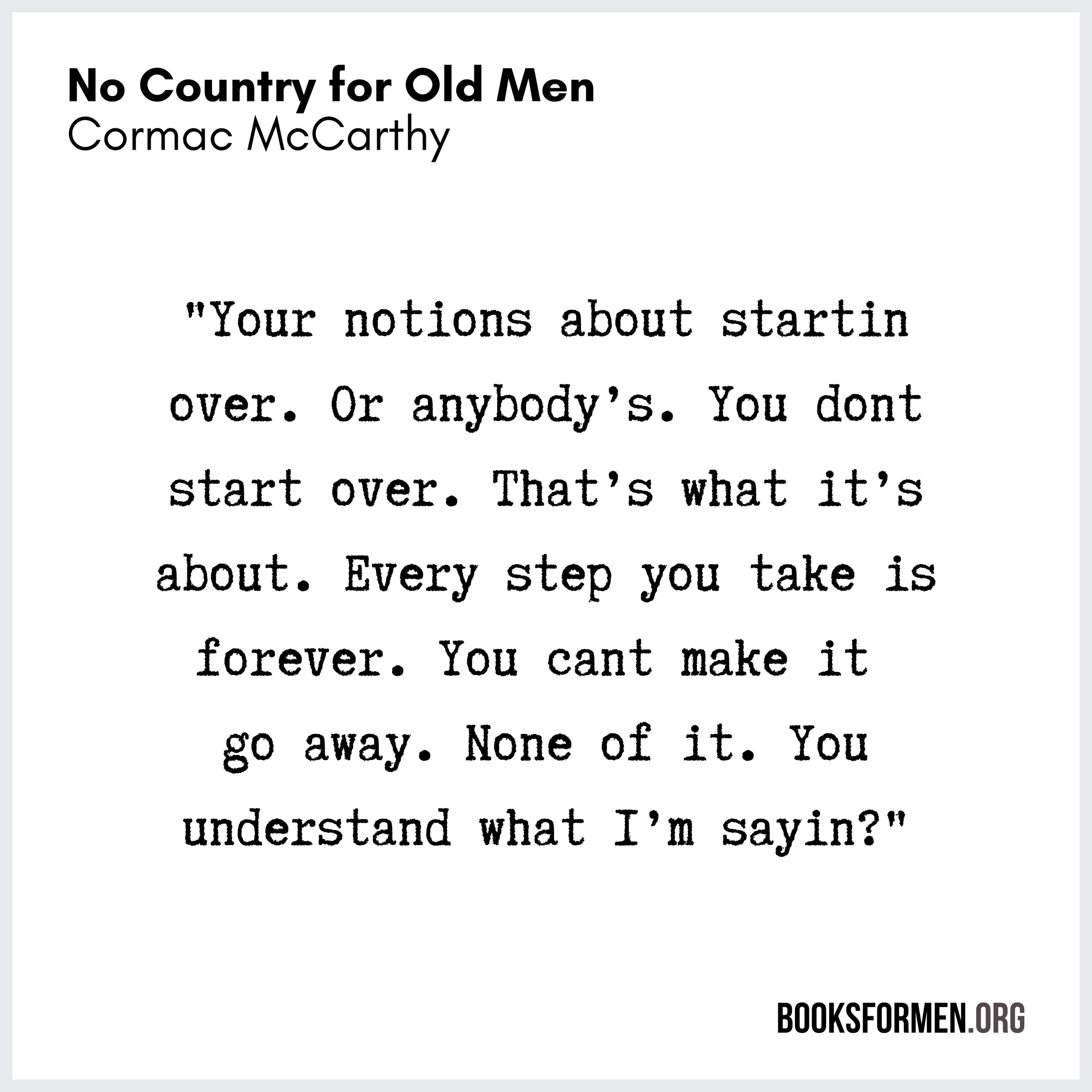 12:45 - Javier Bardem, Josh Brolin, and Tommy Lee Jones they're all amazing in this, and the ending does a great job at delivering the point of the movie. But when I look at the ending of the novel, it's drawn out in a way that is just so much more satisfying. Whether it's the dialogue of Chigurh and Llewellyn Moss's wife, or Llewellyn Moss's encounter with the girl on the side of the road, which is only briefly mentioned in the movie. These elements are amplified in a way, on the page that makes the ending of this novel hit even harder than it does on the screen. It's almost like Cormac McCarthy sticks the knife in and twists, and instead of pulling it out, he just keeps on twisting. That's the way it feels on the page. So for the sake of time, I will wrap this episode up. There will be plenty of quotes from this book in the newsletter at the end of the month, but as I've started with one from the end of the book, I will start with another from the beginning of the book.