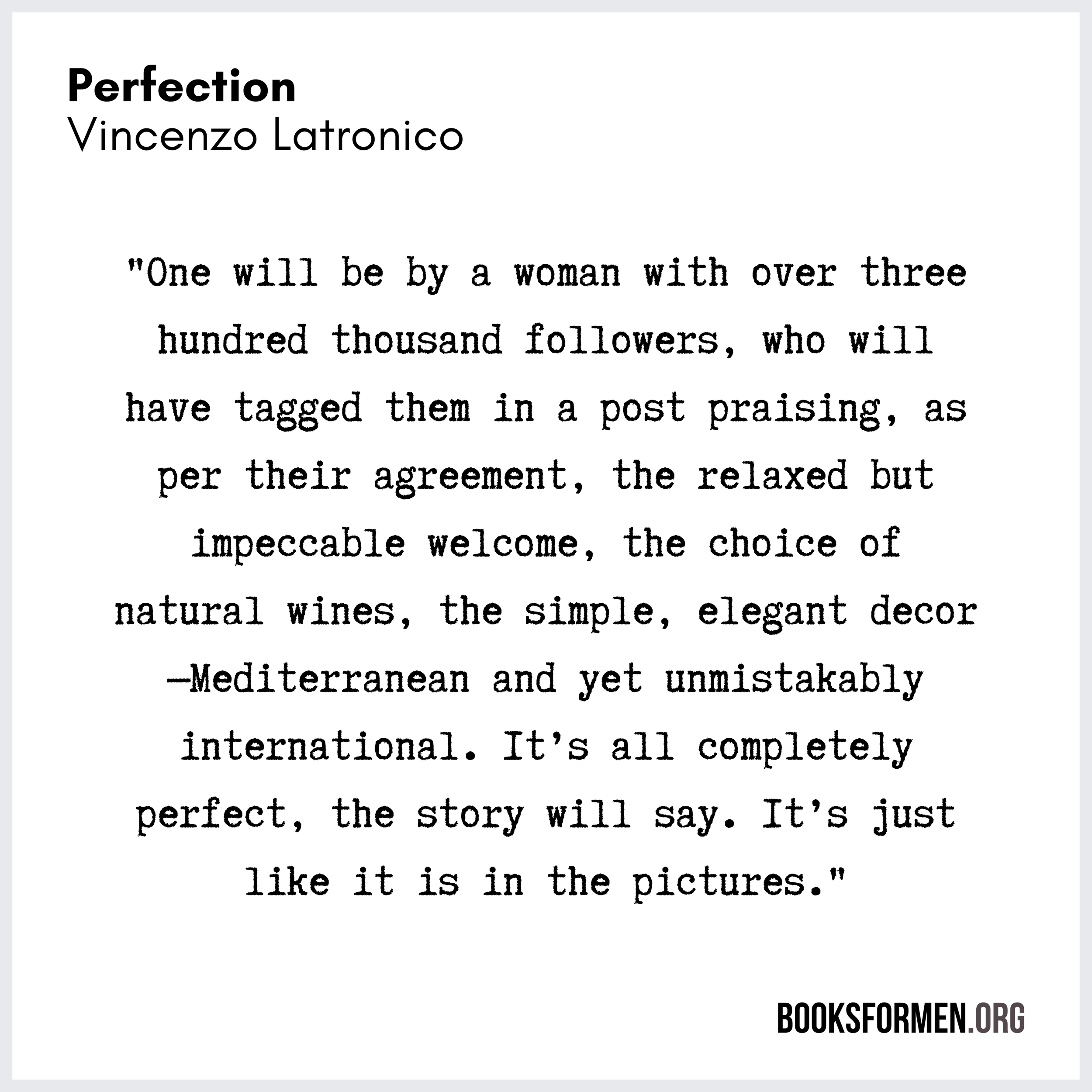 Welcome back to “Books for Men”, a podcast to inspire more men to read and bring together men who do so. This week, I have a piece of literary fiction to share with you. It is on the shorter side, at about 125 pages or so. It is a translated work of fiction, something that is not a stranger. On this podcast, I tend to really like translated fiction for whatever reason, but this one is titled “Perfection” by Vincenzo Latronico, and it came out in 2025, in the English language, but was originally published in 2022. I believe in Italian, so I will share a lot more about this book. Of course, what some of my large takeaways are. Why I think you should read it. I really love this book for a lot of reasons, and also some of my favorite quotes and all of that good stuff. But before I do that, I always like to remind new listeners about the companion newsletter that goes with this podcast, and that's just a once-a-month email that rounds up all of the episodes from that month, complete with full book and author information.